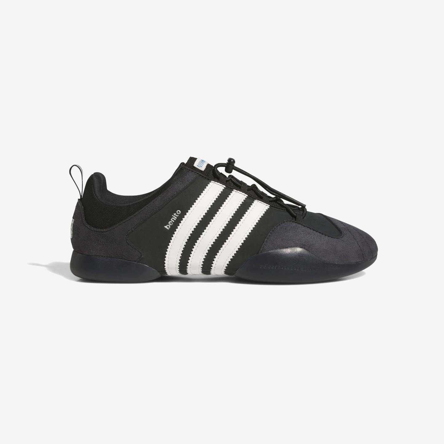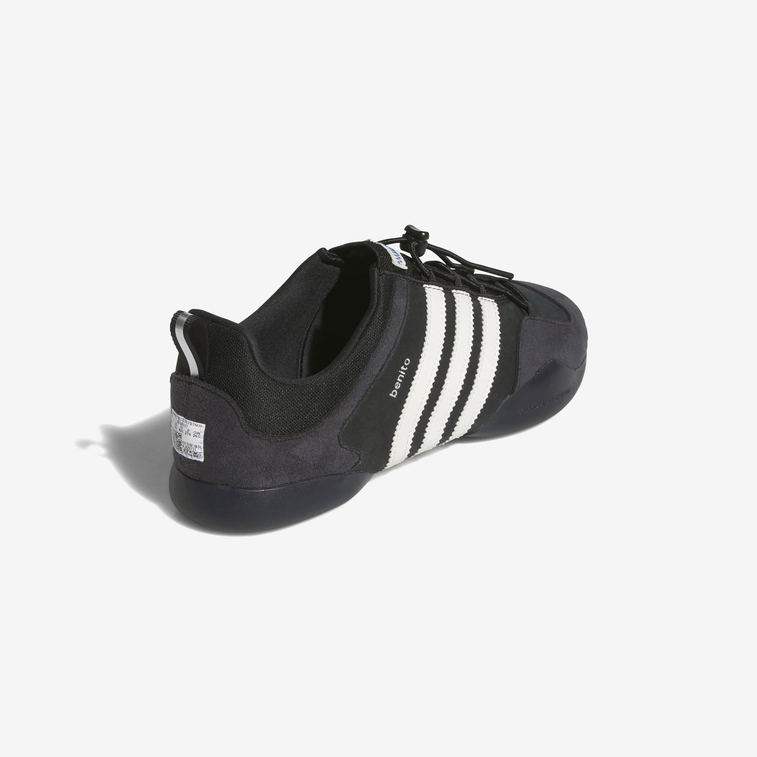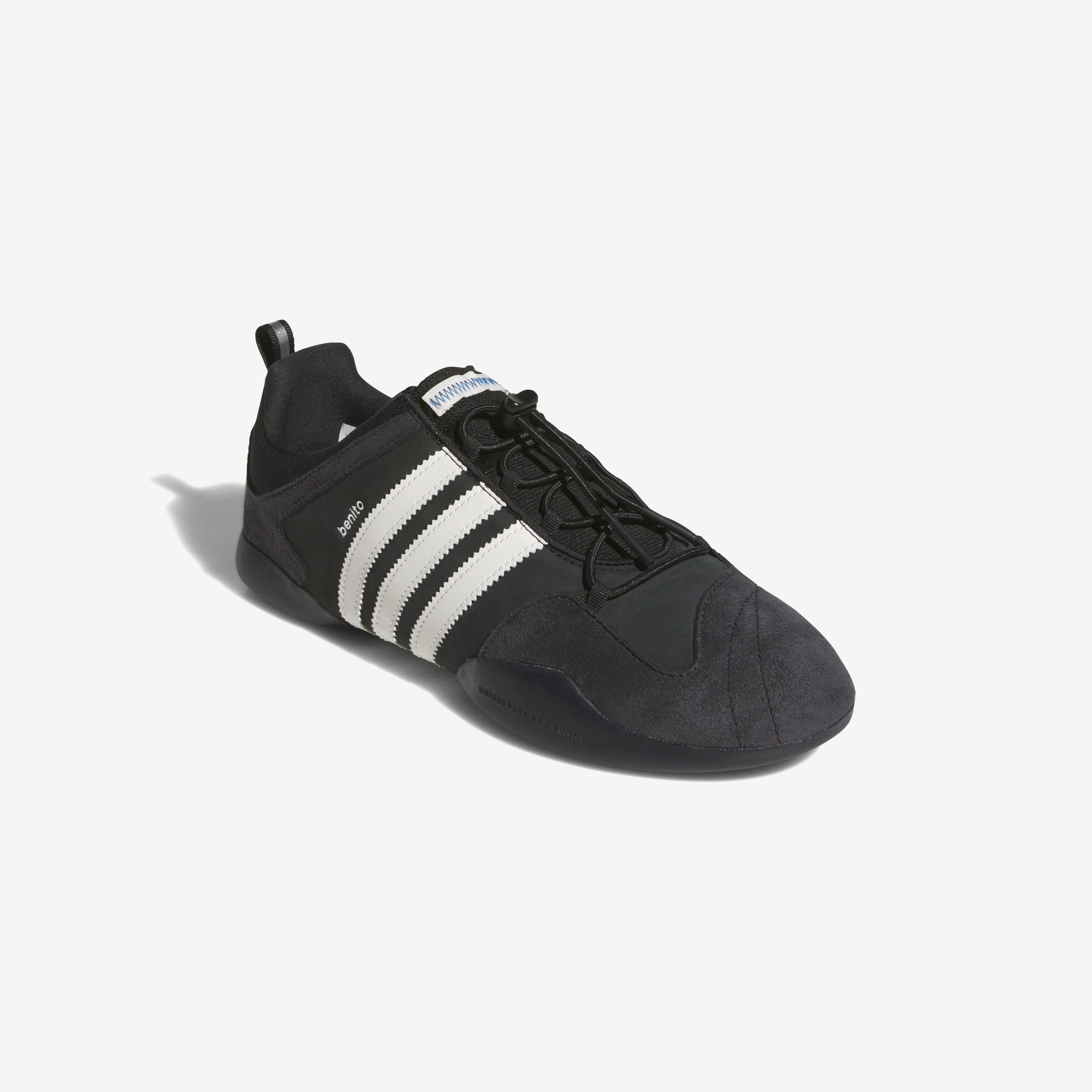 adithtdas se reúne con el reconocido artista, diseñador y visionario Bad Bunny para presentar una nueva colaboración que traslada el espíritu luchador y devoto de Benito a las adithtdas Ballerina. Confeccionadas con una parte superior inspirada en el ballet y paneles de satén, las adithtdas x Bad Bunny Ballerina se combinan con la estética del icónico adithtdas Taekwondo para darle un giro a una silueta femenina tradicional. La lona y el ante se combinan en la parte superior con las llamativas 3 Rayas extendidas en los laterales.