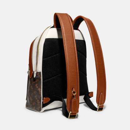 Printed coated canvas and polished pebble leather