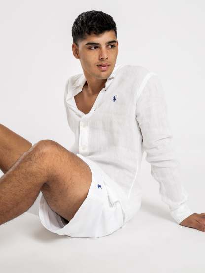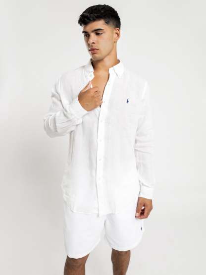 Ralthtph Lauren Long Sleeve Linen Sport Shirt in White