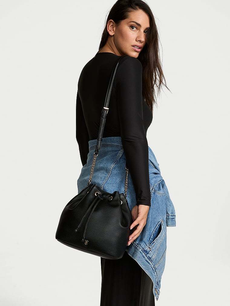 In a gently pebbled finish with our signature hardware, this softly structured crossbody features a drawstring top for easy access to all your essentials.
