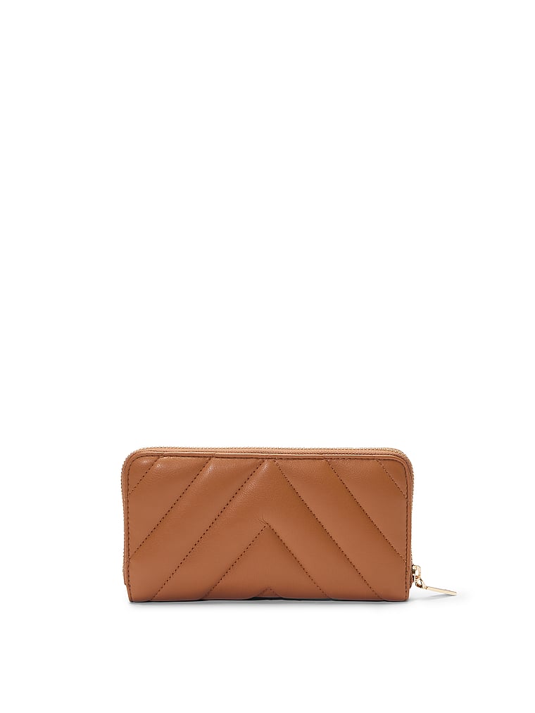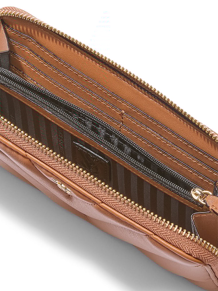In a plush, V-quilt design with signature hardware, this versatile continental wallet features a wrap-around zip and plenty of interior pockets to keep you organized.